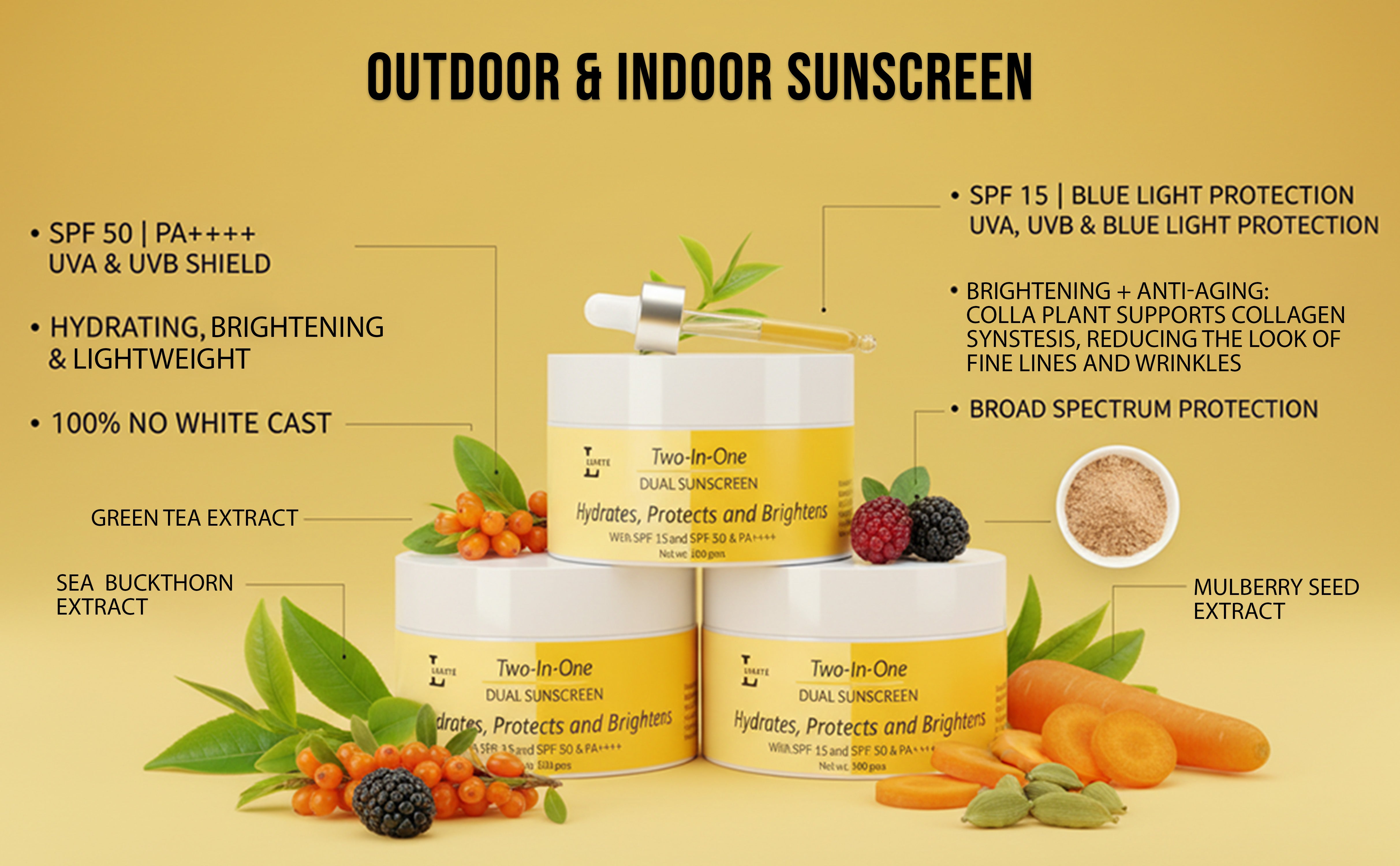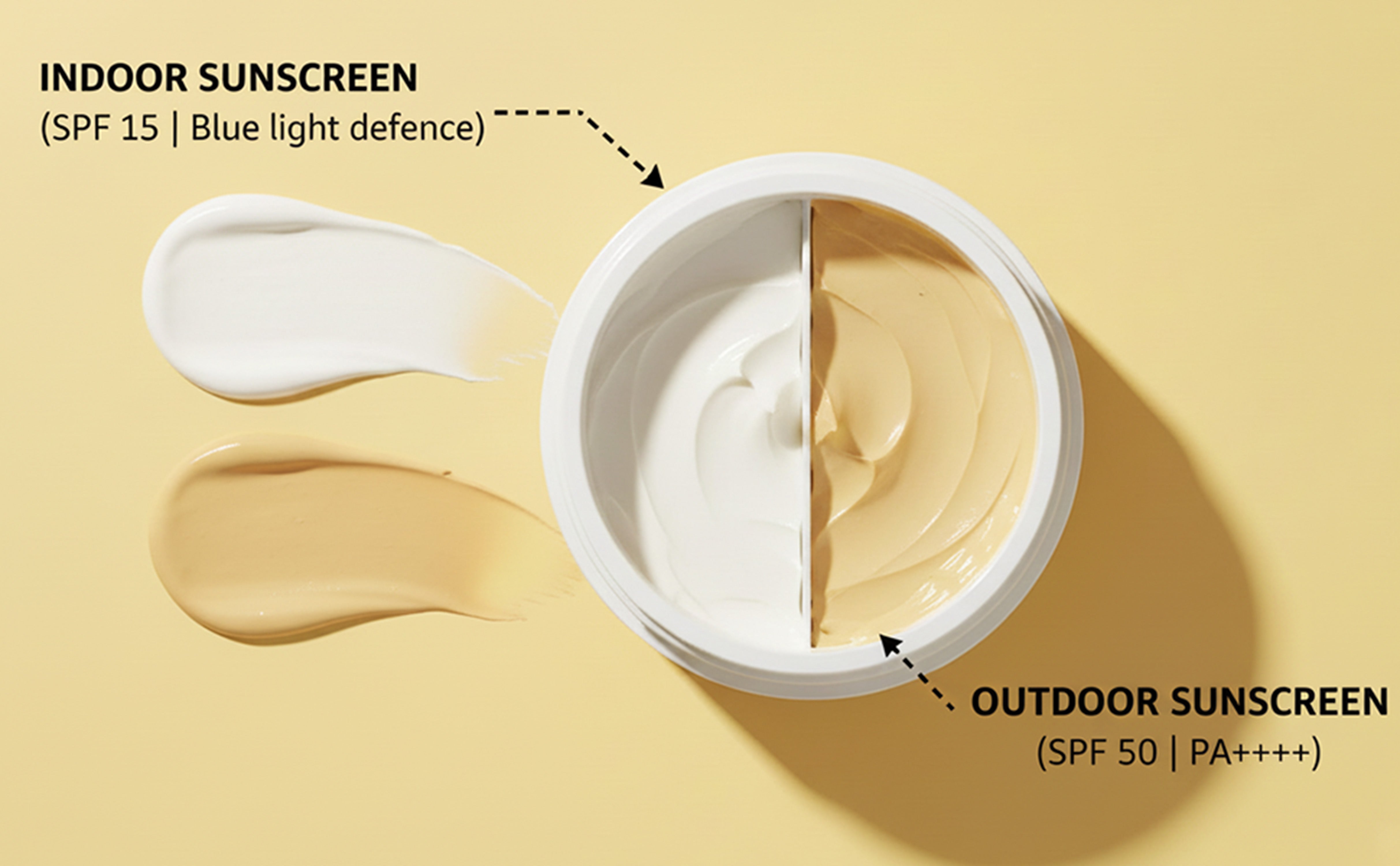 - 2-in-1 Dual Sunscreen – Indoor + Outdoor protection in one container